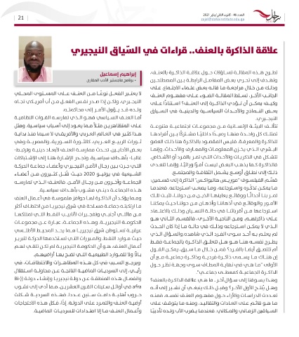 وانفصـ�ال ه�ـذه المنطق�ـة ع�ـن دول�ـة نيجيري�ـا وإنش�ـاء دول�ـة (((�Bi وهـذا يسـوقنا إلى سـؤال آخـر ..ما هـي علاقة الذاكـرة بالعنف؟