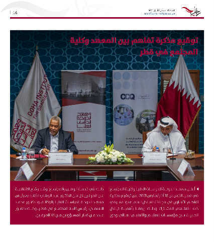 ذلــك في خدمــة الوطــن والمجتمــع .وقــد وقــع الاتفاقيــة أعلــن معهــد الدوحــة للدراســات العليــا وكليــة المجتمــع