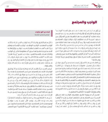 لبنى بن البو عزاوي إن أول مــا يتبــادر إلى ذهننــا عنــد ســاع كلمــة "الواجــب"