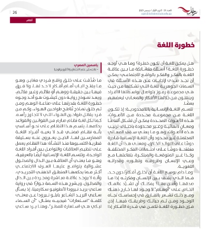 Page 26 - نشرة زاجل الإلكترونية - العدد 55 كانون الأول/ ديسمبر 2021